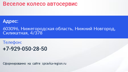 Веселое колесо, автосервис по адресу 603096, Нижегородская область, Нижний Новгород, Силикатная, 4/378 в дальнейшем Организация, размещена в следующих категориях: