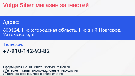 Volga Siber, магазин запчастей по адресу 603124, Нижегородская область, Нижний Новгород, Ухтомского, 6 в дальнейшем Организация, размещена в следующих категориях: