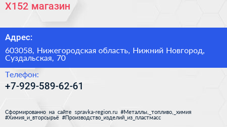 X152, магазин по адресу 603058, Нижегородская область, Нижний Новгород, Суздальская, 70 в дальнейшем Организация, размещена в следующих категориях: