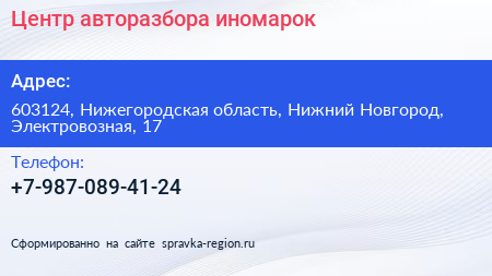 Центр авторазбора иномарок по адресу 603124, Нижегородская область, Нижний Новгород, Электровозная, 17 в дальнейшем Организация, размещена в следующих категориях: