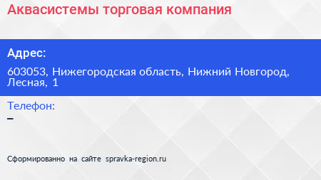 Аквасистемы, торговая компания по адресу 603053, Нижегородская область, Нижний Новгород, Лесная, 1 в дальнейшем Организация, размещена в следующих категориях: