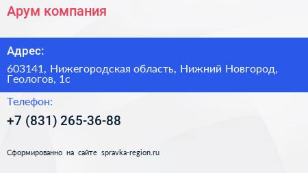 Арум, компания по адресу 603141, Нижегородская область, Нижний Новгород, Геологов, 1с в дальнейшем Организация, размещена в следующих категориях: