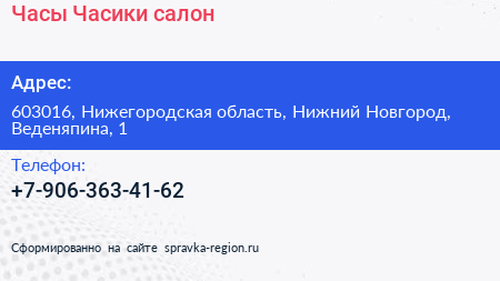 Часы & Часики, салон по адресу 603016, Нижегородская область, Нижний Новгород, Веденяпина, 1 в дальнейшем Организация, размещена в следующих категориях: