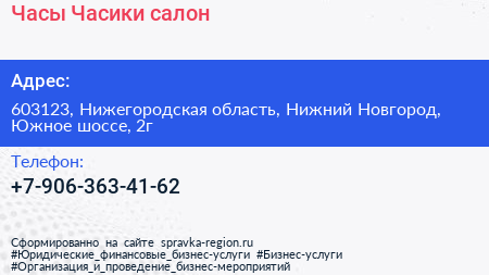 Часы & Часики, салон по адресу 603123, Нижегородская область, Нижний Новгород, Южное шоссе, 2г в дальнейшем Организация, размещена в следующих категориях: