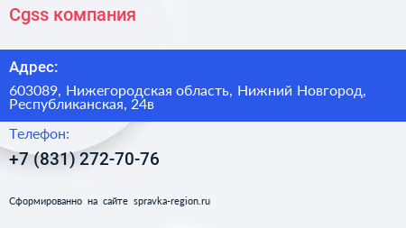 Cgss, компания по адресу 603089, Нижегородская область, Нижний Новгород, Республиканская, 24в в дальнейшем Организация, размещена в следующих категориях: