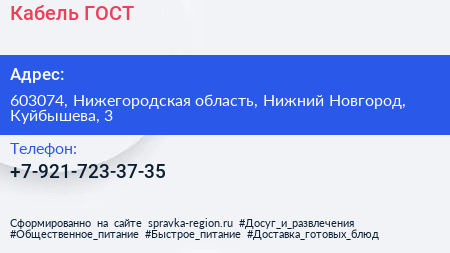 Кабель ГОСТ по адресу 603074, Нижегородская область, Нижний Новгород, Куйбышева, 3 в дальнейшем Организация, размещена в следующих категориях: