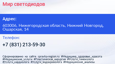 Мир светодиодов по адресу 603006, Нижегородская область, Нижний Новгород, Ошарская, 14 в дальнейшем Организация, размещена в следующих категориях: