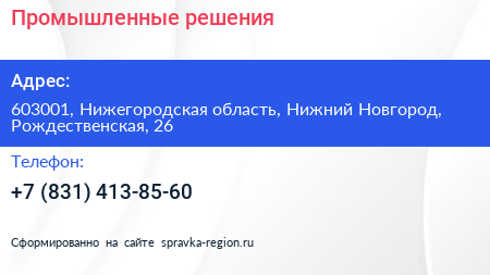Промышленные решения по адресу 603001, Нижегородская область, Нижний Новгород, Рождественская, 26 в дальнейшем Организация, размещена в следующих категориях: