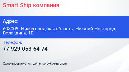 Smart Ship, компания по адресу 603009, Нижегородская область, Нижний Новгород, Вологдина, 1Б в дальнейшем Организация, размещена в следующих категориях: