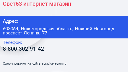 Свет63, интернет-магазин по адресу 603064, Нижегородская область, Нижний Новгород, проспект Ленина, 77 в дальнейшем Организация, размещена в следующих категориях:
