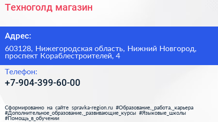 Техноголд, магазин по адресу 603128, Нижегородская область, Нижний Новгород, проспект Кораблестроителей, 4 в дальнейшем Организация, размещена в следующих категориях: