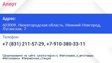 Алерт по адресу 603009, Нижегородская область, Нижний Новгород, Луганская, 7 в дальнейшем Организация, размещена в следующих категориях: