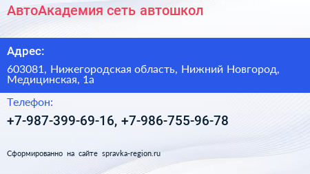 АвтоАкадемия, сеть автошкол по адресу 603081, Нижегородская область, Нижний Новгород, Медицинская, 1а в дальнейшем Организация, размещена в следующих категориях: