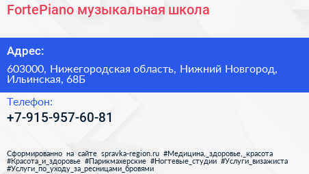 FortePiano, музыкальная школа по адресу 603000, Нижегородская область, Нижний Новгород, Ильинская, 68Б в дальнейшем Организация, размещена в следующих категориях: