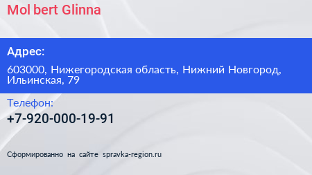 Mol`bert | Glinna по адресу 603000, Нижегородская область, Нижний Новгород, Ильинская, 79 в дальнейшем Организация, размещена в следующих категориях: