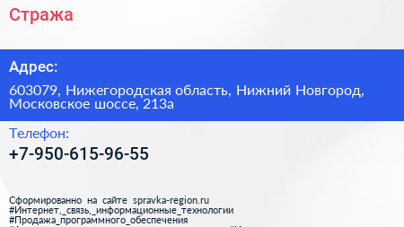 Стража по адресу 603079, Нижегородская область, Нижний Новгород, Московское шоссе, 213а в дальнейшем Организация, размещена в следующих категориях: