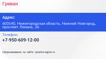 Гриван по адресу 603140, Нижегородская область, Нижний Новгород, проспект Ленина, 26 в дальнейшем Организация, размещена в следующих категориях: