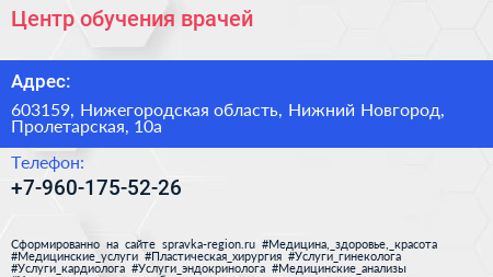 Центр обучения врачей по адресу 603159, Нижегородская область, Нижний Новгород, Пролетарская, 10а в дальнейшем Организация, размещена в следующих категориях: