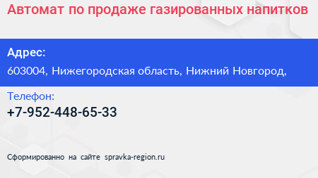 Автомат по продаже газированных напитков по адресу 603004, Нижегородская область, Нижний Новгород, в дальнейшем Организация, размещена в следующих категориях: