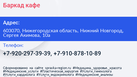 Баркад, кафе по адресу 603070, Нижегородская область, Нижний Новгород, Сергея Акимова, 10а в дальнейшем Организация, размещена в следующих категориях: