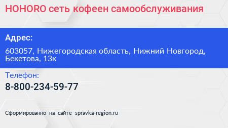HOHORO, сеть кофеен самообслуживания по адресу 603057, Нижегородская область, Нижний Новгород, Бекетова, 13к в дальнейшем Организация, размещена в следующих категориях: