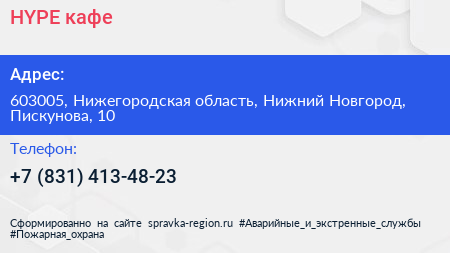 HYPE, кафе по адресу 603005, Нижегородская область, Нижний Новгород, Пискунова, 10 в дальнейшем Организация, размещена в следующих категориях: