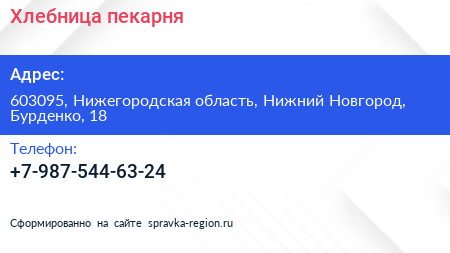 Хлебница, пекарня по адресу 603095, Нижегородская область, Нижний Новгород, Бурденко, 18 в дальнейшем Организация, размещена в следующих категориях: