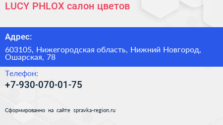 LUCY PHLOX, салон цветов по адресу 603105, Нижегородская область, Нижний Новгород, Ошарская, 78 в дальнейшем Организация, размещена в следующих категориях: