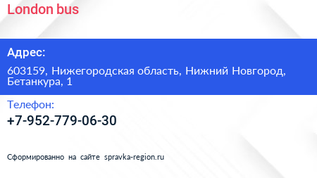London bus по адресу 603159, Нижегородская область, Нижний Новгород, Бетанкура, 1 в дальнейшем Организация, размещена в следующих категориях: