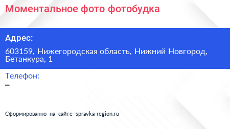 Моментальное фото, фотобудка по адресу 603159, Нижегородская область, Нижний Новгород, Бетанкура, 1 в дальнейшем Организация, размещена в следующих категориях: