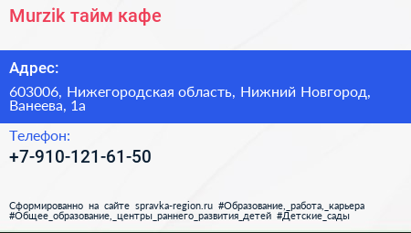 Murzik, тайм-кафе по адресу 603006, Нижегородская область, Нижний Новгород, Ванеева, 1а в дальнейшем Организация, размещена в следующих категориях: