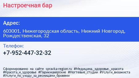 Настроечная, бар по адресу 603001, Нижегородская область, Нижний Новгород, Рождественская, 32 в дальнейшем Организация, размещена в следующих категориях: