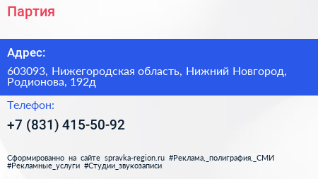 Партия по адресу 603093, Нижегородская область, Нижний Новгород, Родионова, 192д в дальнейшем Организация, размещена в следующих категориях:
