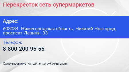 Перекресток, сеть супермаркетов по адресу 603034, Нижегородская область, Нижний Новгород, проспект Ленина, 33 в дальнейшем Организация, размещена в следующих категориях: