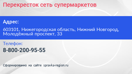 Перекресток, сеть супермаркетов по адресу 603101, Нижегородская область, Нижний Новгород, Молодёжный проспект, 33 в дальнейшем Организация, размещена в следующих категориях: