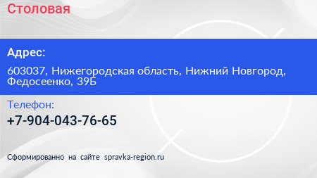 Столовая по адресу 603037, Нижегородская область, Нижний Новгород, Федосеенко, 39Б в дальнейшем Организация, размещена в следующих категориях: