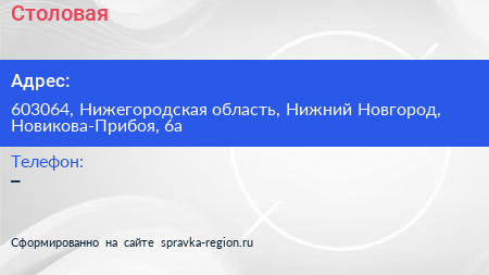 Столовая по адресу 603064, Нижегородская область, Нижний Новгород, Новикова-Прибоя, 6а в дальнейшем Организация, размещена в следующих категориях: