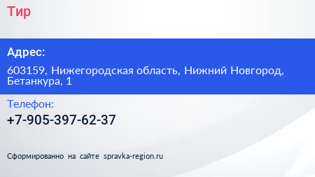 Тир по адресу 603159, Нижегородская область, Нижний Новгород, Бетанкура, 1 в дальнейшем Организация, размещена в следующих категориях: