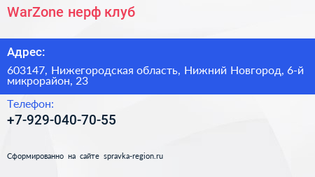 WarZone, нерф-клуб по адресу 603147, Нижегородская область, Нижний Новгород, 6-й микрорайон, 23 в дальнейшем Организация, размещена в следующих категориях: