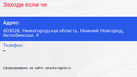 Заходи, если че по адресу 603028, Нижегородская область, Нижний Новгород, Актюбинская, 4 в дальнейшем Организация, размещена в следующих категориях: