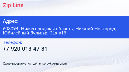 Zip-Line по адресу 603094, Нижегородская область, Нижний Новгород, Юбилейный бульвар, 31а к19 в дальнейшем Организация, размещена в следующих категориях: