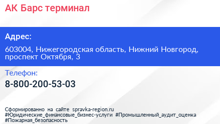 АК Барс, терминал по адресу 603004, Нижегородская область, Нижний Новгород, проспект Октября, 3 в дальнейшем Организация, размещена в следующих категориях: