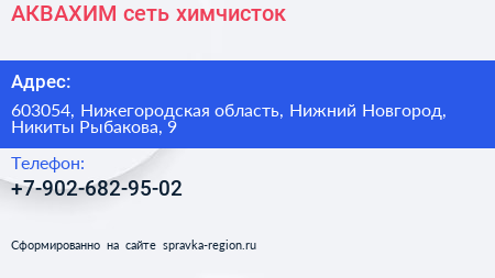 АКВАХИМ, сеть химчисток по адресу 603054, Нижегородская область, Нижний Новгород, Никиты Рыбакова, 9 в дальнейшем Организация, размещена в следующих категориях: