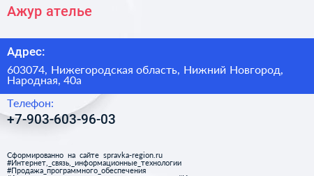 Ажур, ателье по адресу 603074, Нижегородская область, Нижний Новгород, Народная, 40а в дальнейшем Организация, размещена в следующих категориях: