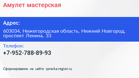 Амулет, мастерская по адресу 603034, Нижегородская область, Нижний Новгород, проспект Ленина, 33 в дальнейшем Организация, размещена в следующих категориях: