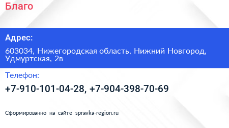 Благо по адресу 603034, Нижегородская область, Нижний Новгород, Удмуртская, 2в в дальнейшем Организация, размещена в следующих категориях:
