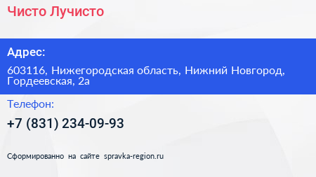 Чисто Лучисто по адресу 603116, Нижегородская область, Нижний Новгород, Гордеевская, 2а в дальнейшем Организация, размещена в следующих категориях: