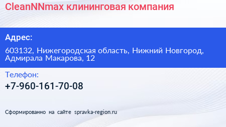 @CleanNNmax, клининговая компания по адресу 603132, Нижегородская область, Нижний Новгород, Адмирала Макарова, 12 в дальнейшем Организация, размещена в следующих категориях: