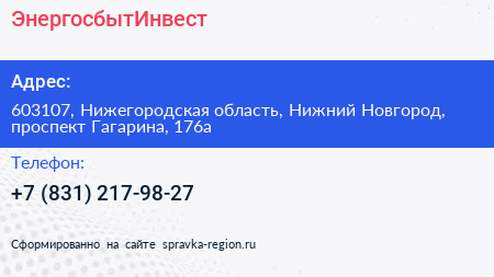 ЭнергосбытИнвест по адресу 603107, Нижегородская область, Нижний Новгород, проспект Гагарина, 176а в дальнейшем Организация, размещена в следующих категориях: