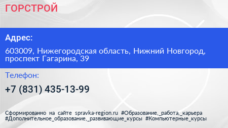 ГОРСТРОЙ по адресу 603009, Нижегородская область, Нижний Новгород, проспект Гагарина, 39 в дальнейшем Организация, размещена в следующих категориях: